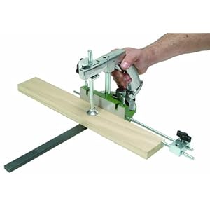 Useful and accurate when creating crosscuts or routing end grain on table saws. Squeezing the pistol grip engages a downward pressure clamp, securing your stock firmly in place. Fits any standard 3/4" x 3/8" miter slot. The positive adjustable stops at 90º and 45º, left and right, are of help for left and right tilt table saws. Includes adjustable stop block, perfect for repetitive length cuts. 4" Maximum stock thickness. Bar extends to 12".